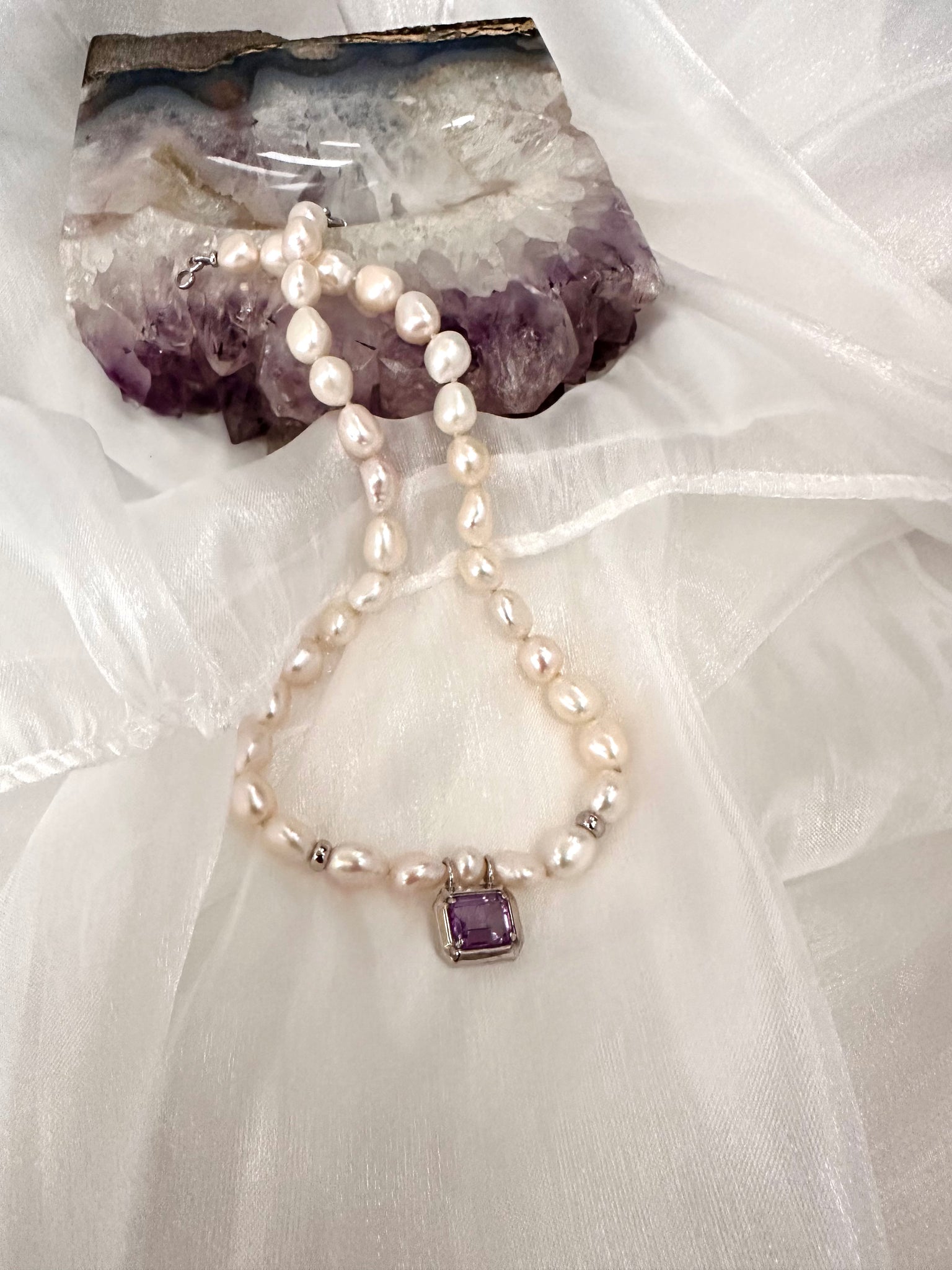 Nugget Pearl Necklace with Amethyst Pendant – Viola Collection