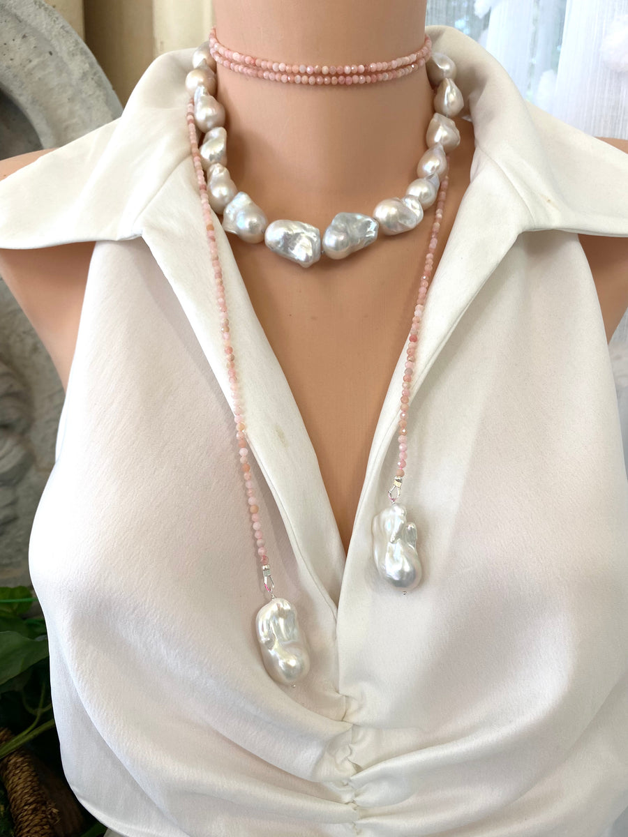 Multicolor Ethiopian Opal Necklace with Baroque Pearl